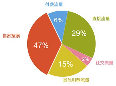 次的訪問數(shù)據(jù)。分布這些數(shù)據(jù)發(fā)現(xiàn)自然搜索占近一般的站內(nèi)流量來源(47%),社
